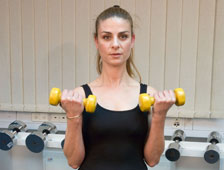 כפיפת-מרפקים בעמידה עם משקולת-יד